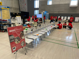 HITアリーナ(体育館)を会場に,電気電子工学学生が中心となって活動している「夢プロジェクト」のでの電子系モノづくりの展示を行いました。