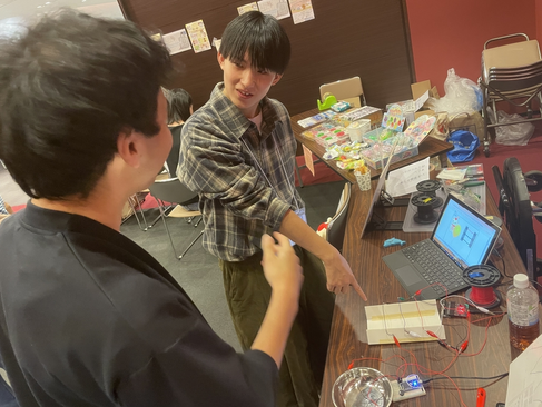 またNexusをサポートしている木村教授も今回,赤か青か黒のコードを切って爆発を止める「がおーくんを救え! ~ ジャガーノートゲーム ~」,また「キッチンピアノ」もデモ体験として出展しました。